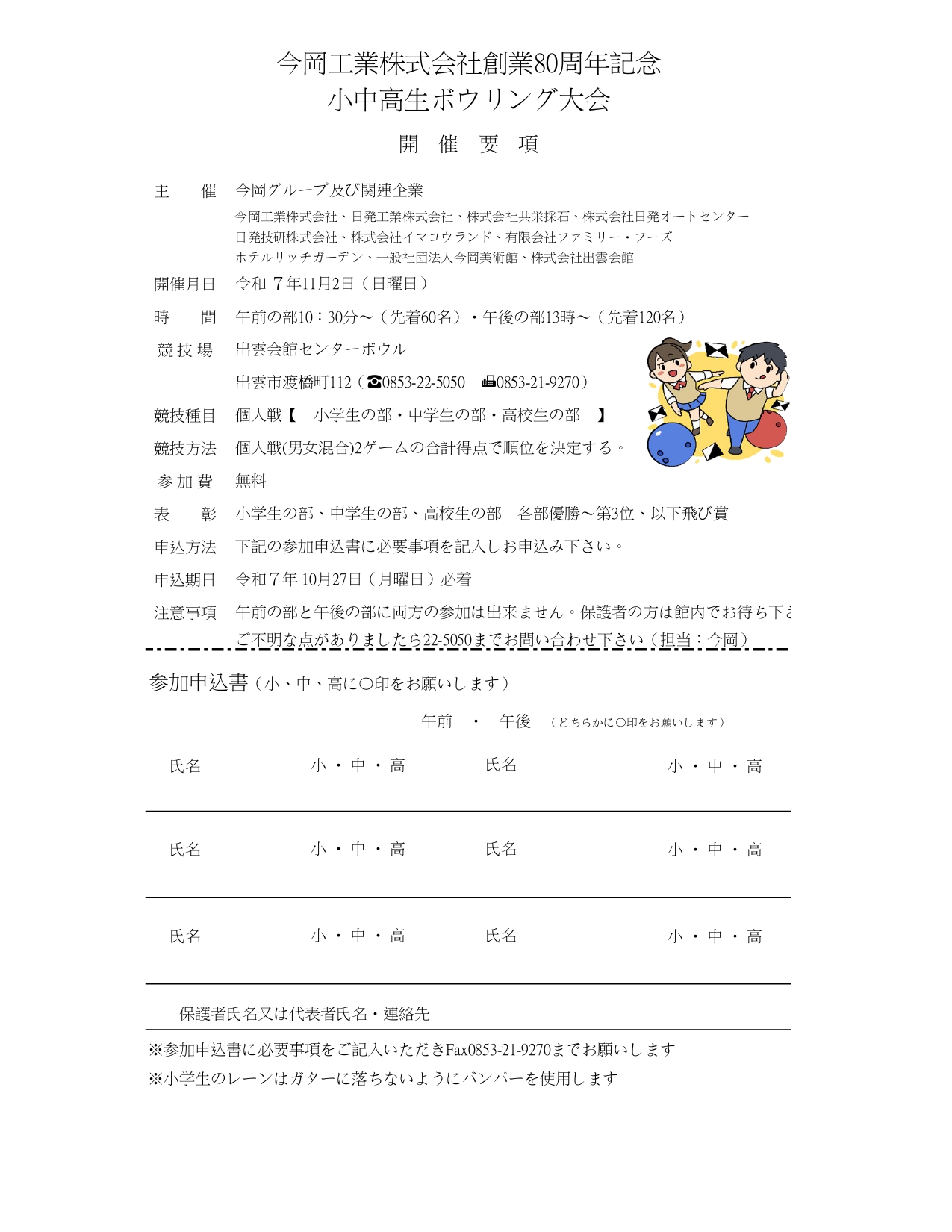お問い合わせは:出雲会館センターボウル?0853-22-5050今岡まで